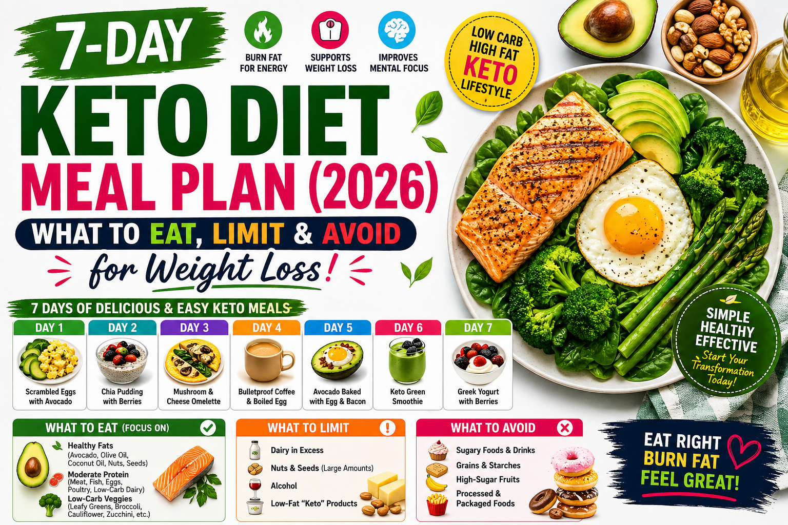 7-Day Keto Diet Meal Plan (2026): What to Eat, Limit & Avoid for Weight Loss!
