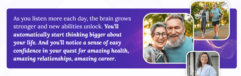 According to the promotional claims, users report being able to understand and absorb new information more quickly after listening consistently.